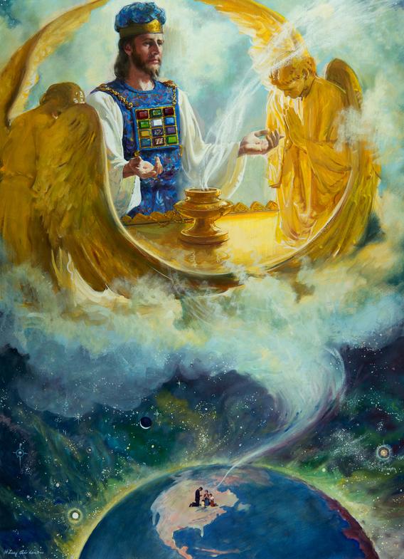 In heaven Jesus “officiates in the presence of God, offering up His shed blood…. (He) presents the oblation offered for every offense and every shortcoming of the sinner… He holds before the Father the censer of His own merits, in which there is no taint of earthly corruption…. The incense comes up before God entirely acceptable.” 1 Selected Messages p344.